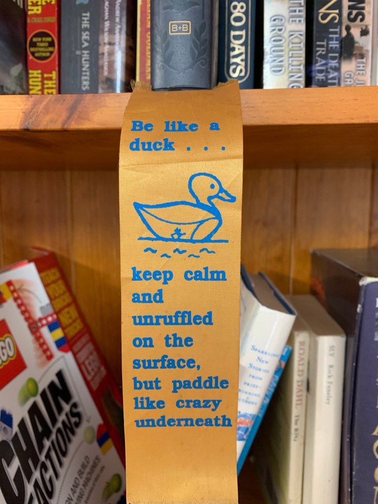 I only spoke about some things but I was very selective. My grandmother Charlotte had given me a bookmark when I was younger; it had a duck on it with the words: “Be like a duck… Keep calm and unruffled on the surface, but paddle like crazy underneath”. I loved that bookmark but never actually gave much thought to it until years later when talking to another psychologist. They told me, and this is from a mental health point of view: “That statement is mentally damaging because it encourages people not to talk”. I took it under advisement, at that point in my life I thought I could work things out better on my own without talking.