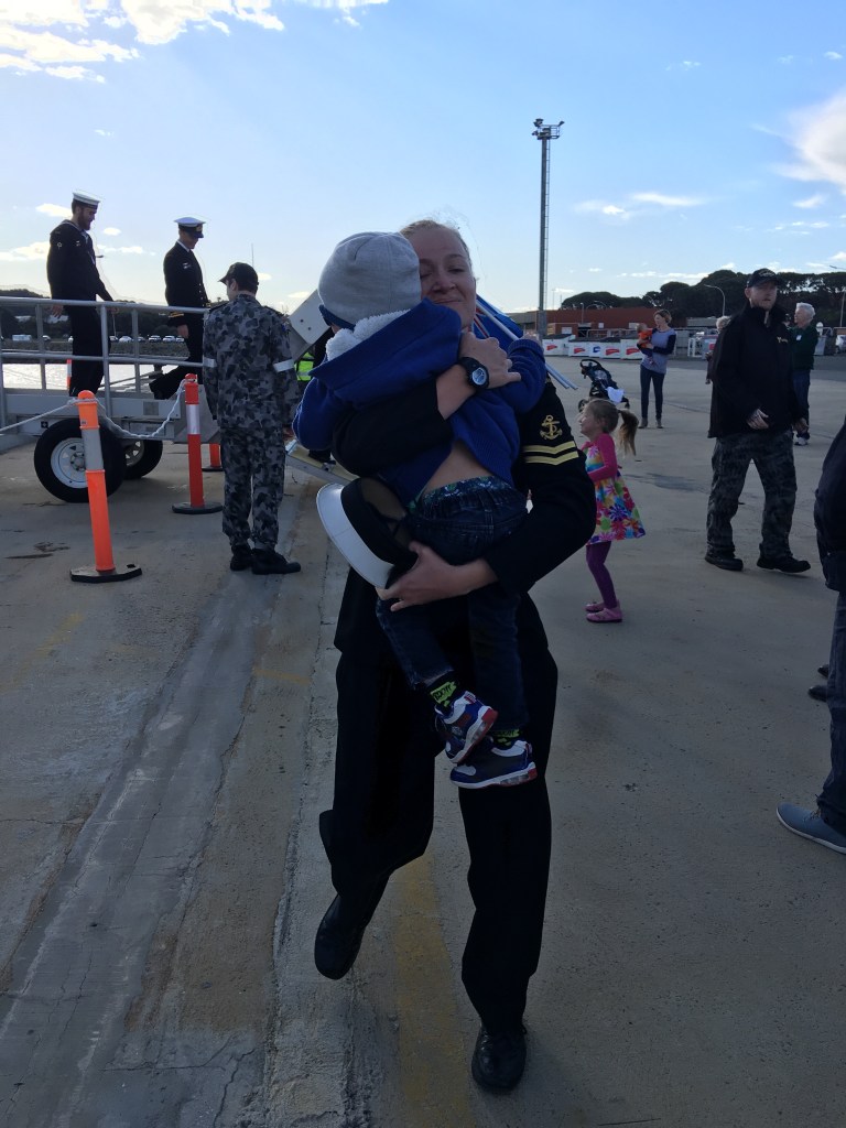 I established a pretty good routine with Harrison that worked well for most of the time while Shayne was away, but when she first went to sea they were weekly running. They would sail Monday morning and return on Friday, and for the most part Shayne would be home for the weekend before sailing again Monday morning. This screwed with our home routine and a baby has no idea how to process having his mum coming and going for a week at a time. This spanned over several months before the ship eventually sailed for a six month deployment.